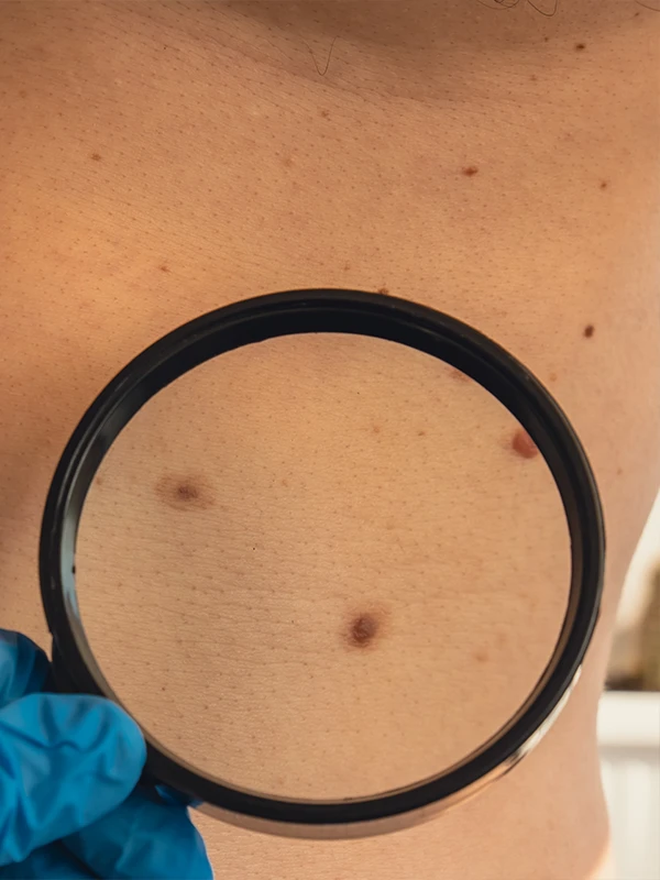 - Moles: Pigmented skin growths that can vary in size, shape, and color.